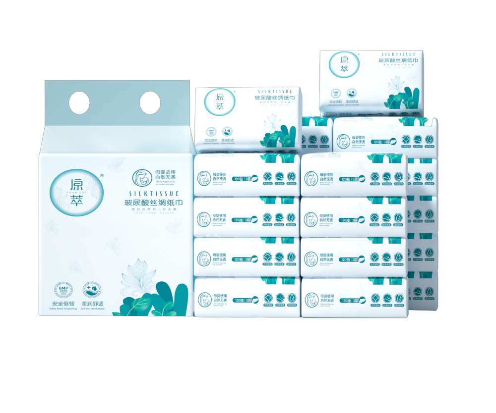 原萃纸巾纸张含有水分子:20%-25%(湿度)富含水分子,柔软的同时有湿润感,洁净度更好